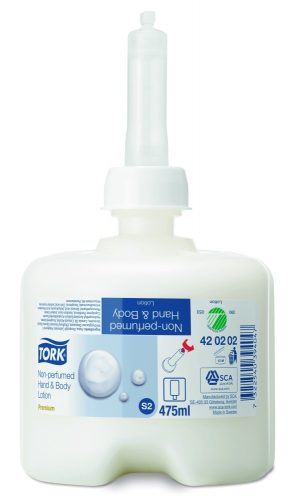 A Tork illatmentes kéz- és testápolót normál és száraz bőrre ajánljuk. Védi a bőrt a túlzott kiszáradástól, és nap mint nap táplálja, ápolja és puhítja. Illatmentes kézápoló tápláló összetevőkkel, amelyek biztosítják a bőr természetes vízháztartását. Bizonyítottan könnyen használható a Tork Mini folyékonyszappan adagolókkal, megfelelő kézhigiéniát biztosítva mindenkinek.